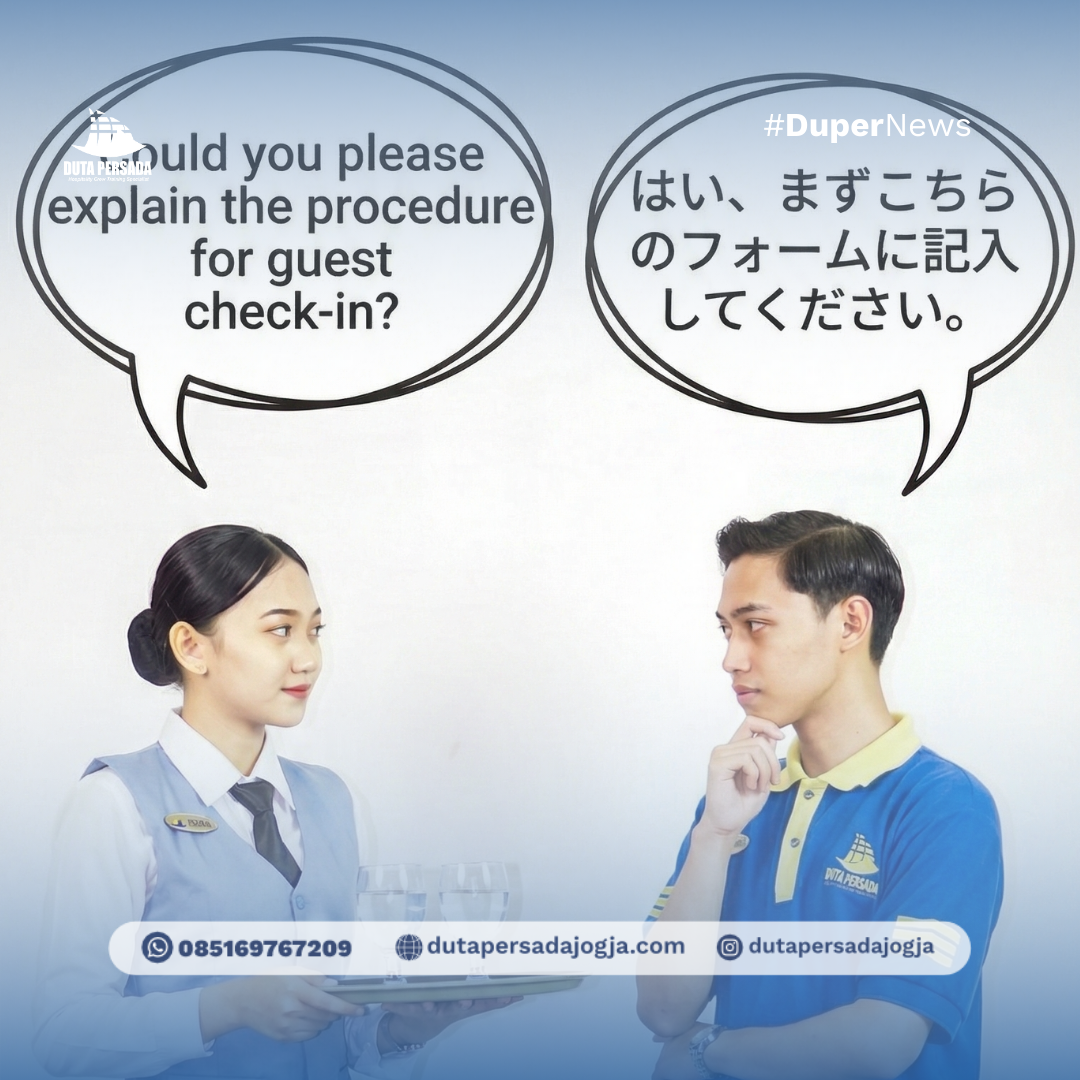 Fasilitas yang disediakan mencakup e-modul eksklusif, seragam khusus Duta Persada, name tag personal, serta garansi pembelajaran bahasa Inggris hingga Anda mahir.