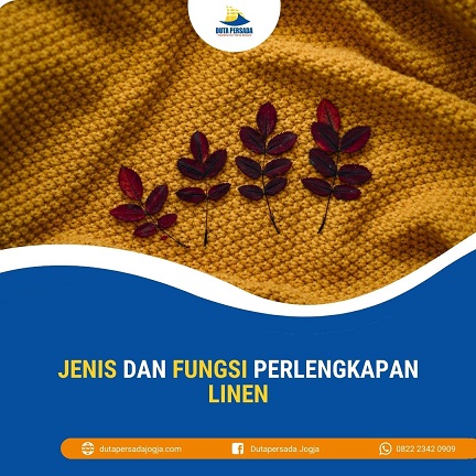 Sebab pemilihan kain yang tepat, akan memberikan rasa nyaman, mudah bagi karyawan ketika melakukan pelayanan dan juga tamu. Sedangkan Untuk mewujudkan hal tersebut, di dalam linen teryata 6 peralatan yang memiliki nama kain dan fungsi yang berbeda.