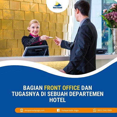 Bagian Front Office Dan Tugasnya Di Sebuah Departemen Hotel. Mungkin dari beberapa orang yang belum mengetahui tugas front office, beranggapan bahwa pekerjaan ini hanya dituntut untuk berpenampilan menarik dan rapi. Padahal tidak hanya itu, kegiatan front office juga harus memiliki pengetahuan yang luas dan kualitas pelayanan yang baik dalam melayani para tamu yang hadir. Sebab front office memiliki peran penting `dari sebuah bagian kantor di depan sebuah perusahaan. Yang biasanya terletak di bagian yang mudah di lihat oleh tamu.